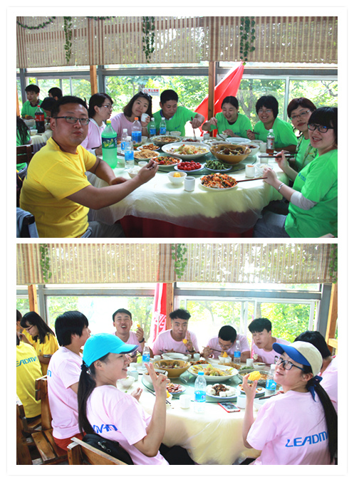 丰盛的午餐后,稍作休息,我们开始了团队比拼的“1021”项目。其中包括:《鼓面颠球》、《能量传递》、《不倒森林》、《跳大绳》、《钻圈》、《火车》、《风雨同舟》和《我们是最棒的团队》八个小项目,需一气呵成,10分21秒内完成,用时最短的队伍为胜。紧张、有序、步调一致,让我们由“一群人组成的团伙”渐渐转变为“像一个人的团队”!