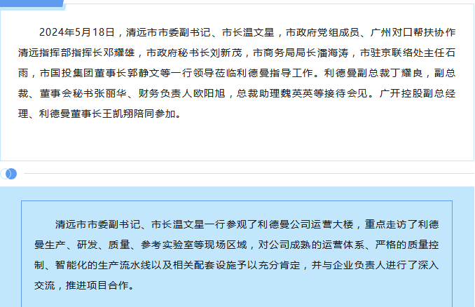 清远市市委副书记、市长温文星一行 莅临星空(中国)一站式服务平台指导工作