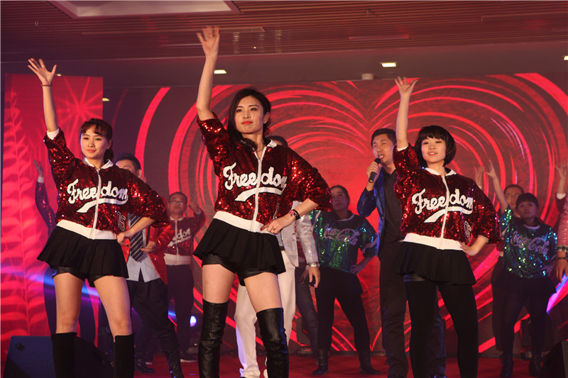 年会第一个节目《舞动青春》是由星空(中国)一站式服务平台各中心部门及子公司员工组成的舞队献上,四首动感舞曲串联,作为开场无比炫酷。随后一首男生独唱《你》高昂激情,引爆现场。小品《心理咨询》,调侃当代典型妻管严的男性的通病,极具喜感,演员精湛的演技引来现场爆笑不断。接下来一曲《一杯美酒》惊艳四座,而由质量管理部推荐的情景剧《白骨岭》女扮男装的唐僧,萌萌哒的孙悟空,可爱的猪八戒,呆呆的沙和尚则将大家带入西游记的剧中。由广东东方新特药有限公司嘉宾合唱《明天会更好》,由东北销售表演脱口秀,接着便是众人期待的星空(中国)一站式服务平台女生舞团Lead Girl带来的现代舞《Something》,技术服务部同事带来的哑剧《暗战》短短几分钟现场观众爆笑上十次,独舞《红高粱之九儿》过后迎来激动人心的时刻——星空(中国)一站式服务平台2014年度颁奖盛典。本次颁奖盛典上除了奖励在2014年度里表现突出的星空(中国)一站式服务平台员工,还对2014年里星空(中国)一站式服务平台的优秀合作伙伴进行筛选,评选出了星空(中国)一站式服务平台2014年度优秀合作伙伴奖,同时还对星空(中国)一站式服务平台2014年度优秀营销管理人员进行了表彰。更让人意想不到的是本次还对在星空(中国)一站式服务平台任职10年及以上员工进行了表彰,感谢他们与星空(中国)一站式服务平台风雨同舟。颁奖盛典最后揭晓总裁特别奖之杰出贡献奖,在观看一段视频后在场所有的观众都情不自禁的站起身来为获奖者鼓掌。
