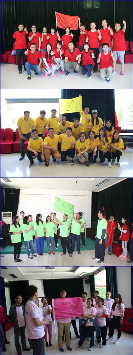 分别是红队-梦想起航队!黄队-小黄人队!绿队-绿巨人队!粉队-越翔队!